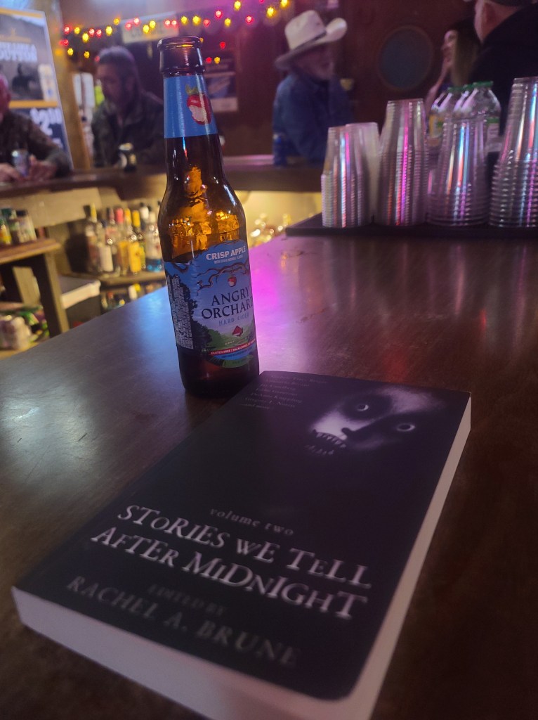 I had this book with me just after Christmas at my favorite dive bar in Union County, Fuzzy’s, while starting out the night with an Angry Orchard.